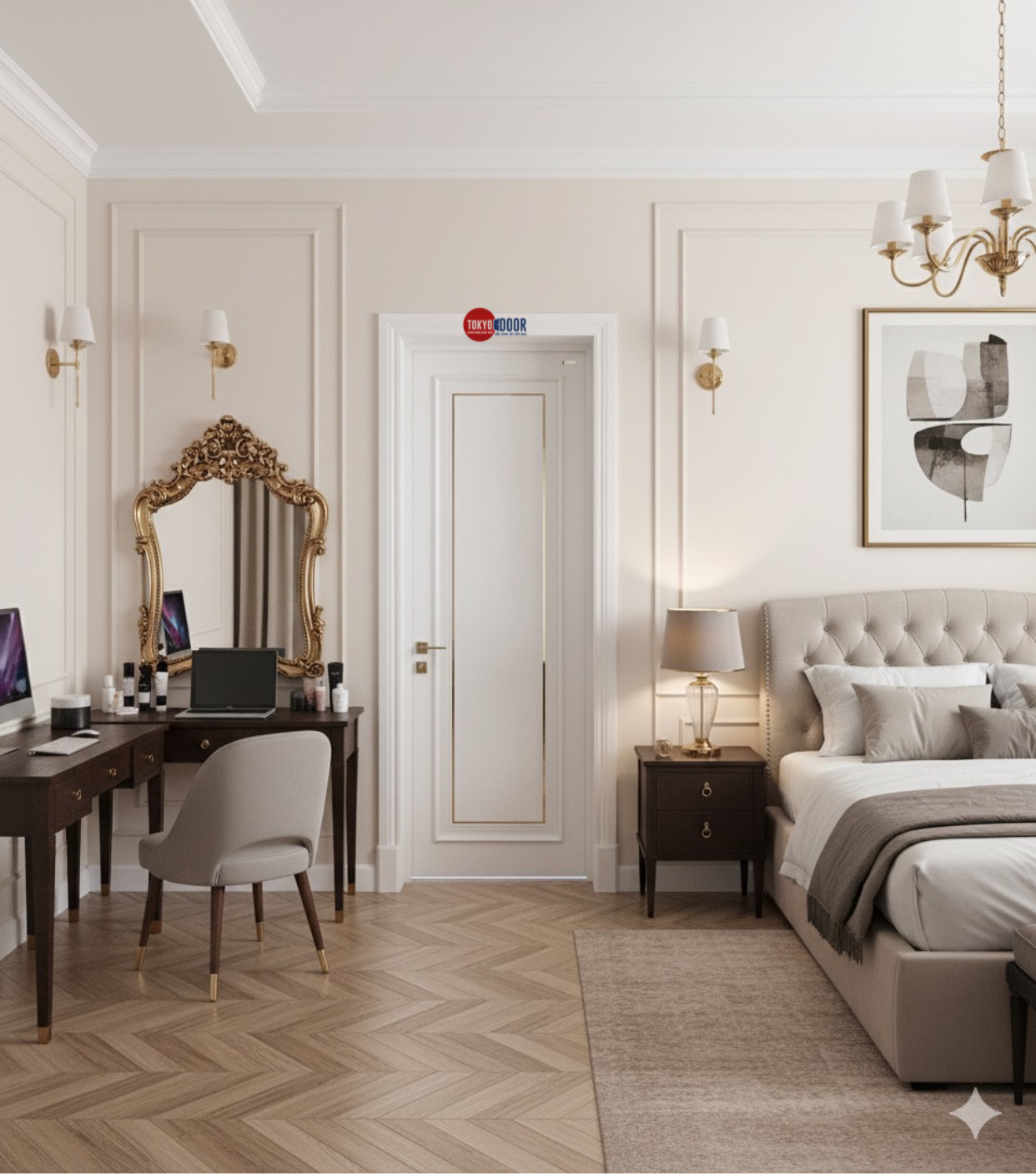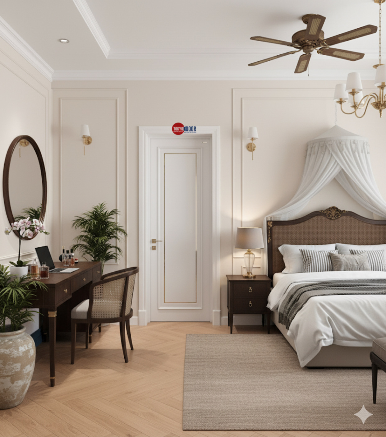 + Vân gỗ và các ô pano cân xứng giúp Cửa gỗ Composite tân cổ điển mang lại vẻ đẹp ấm áp, sang trọng và gần gũi cho mỗi căn phòng.